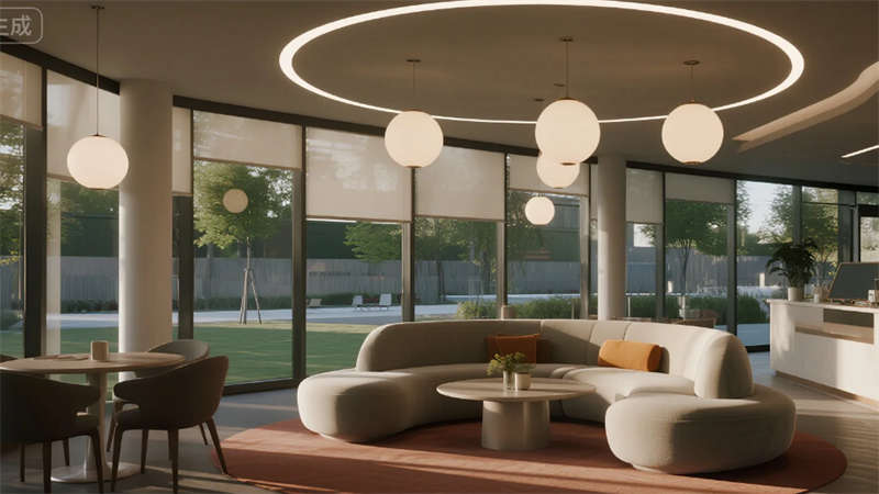 生產(chǎn)空間聚焦高效與潔凈,智能機(jī)械臂單元與模塊化管線系統(tǒng)滿足精密材料制造需求,冷色調(diào)照明強(qiáng)化科技嚴(yán)謹(jǐn)感。研發(fā)區(qū)域突破傳統(tǒng)廠房格局,落地窗引入自然光與園區(qū)景觀,垂直綠墻凈化空氣的同時(shí)激發(fā)創(chuàng)造力。