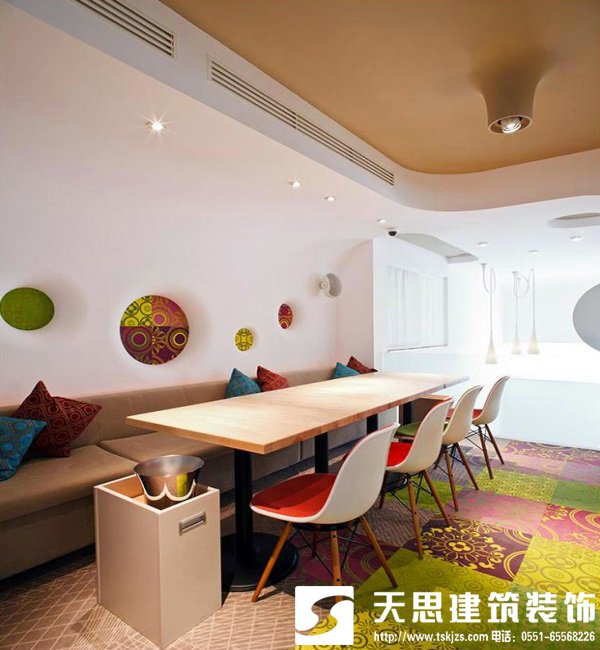 采用鮮艷明亮的簡約風格餐廳裝修效果圖,我們也隨之回到了現(xiàn)代,彩色地板與彩色桌椅相互呼應,個性鮮艷,讓整個餐飲空間充滿著活躍之感,被更為細致的刻畫并且賦予時尚的裝修設計造型與鮮艷的顏色。薄薄的桌面纖細在桌腳,現(xiàn)代工藝使木頭也有不小的改變。