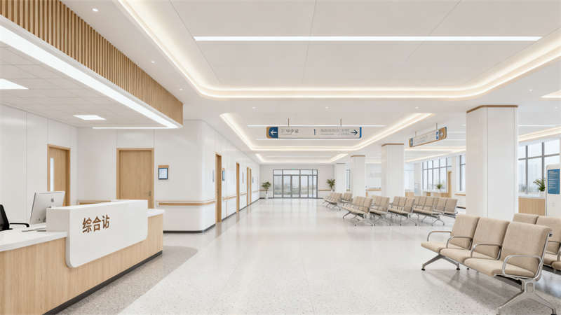 室內(nèi)空間在保持風(fēng)格統(tǒng)一的同時,兼顧不同區(qū)域的功能特性。門診區(qū)域動線清晰,布局合理,避免患者往返奔波,墻面以柔和的色調(diào)為主,搭配簡約的裝飾元素,營造清爽有序的環(huán)境;候診區(qū)融入自然元素,柔和的燈光、舒適的座椅與綠植點(diǎn)綴相得益彰,有效緩解患者等待時的煩躁情緒;病房空間注重私密性與舒適性,軟裝選擇以溫馨色調(diào)為主,家具擺放兼顧實(shí)用與便捷,讓患者仿佛置身“家一般”的休憩環(huán)境,助力康復(fù);診療室與護(hù)士站強(qiáng)調(diào)高效與便捷,合理的功能分區(qū)讓醫(yī)護(hù)工作更順暢,同時通過親切的設(shè)計(jì)細(xì)節(jié)拉近與患者的距離;康復(fù)區(qū)域與走廊設(shè)計(jì)延續(xù)溫潤風(fēng)格,避免生硬的空間劃分,通過連貫的視覺元素讓整個醫(yī)院空間形成有機(jī)整體,既方便患者活動,又讓醫(yī)護(hù)工作更高效,真正實(shí)現(xiàn)“以患者為中心”的設(shè)計(jì)初衷,讓醫(yī)療空間不僅具備診療功能,更成為助力身心康復(fù)的療愈場所。
